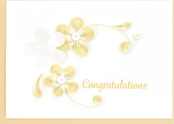 he Quilled Floral Congrats Gift Enclosure is perfect for the recent graduate, wedding and everything in between! This card features quilled gold and white flowers with the word Congratulations written in script.