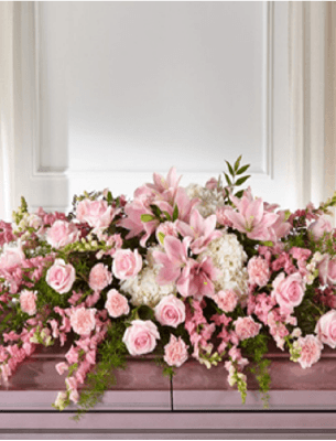Grace, gentleness, and joy is reflected in this stunning pink array of florals! Remember your loved one, with the soft heart, full of grace & joy!