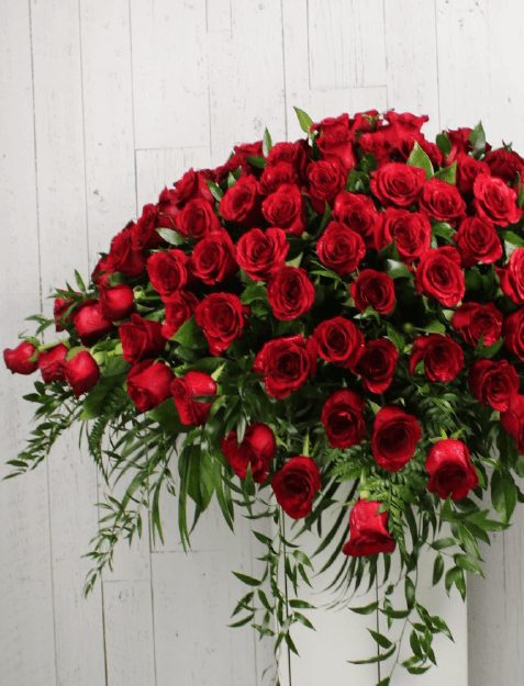 The perfect all red tribute to convey peace and serenity. Truly a memorable final farewell to a loved one.